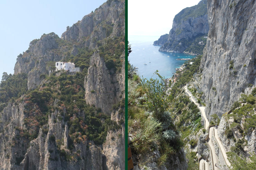 Capri has two sides to the island that are distinctly different; you land at the Marina Grande, which is on the north of the island facing into the Bay of Naples but on the south side there is a small landing place, the Marina Piccola and there is a single road connecting the two sides. Capri itself is quite small with some shops and restaurants but not much else; there is a commune on the west side of the island called Anacapri which has a chairlift up to the top of Mount Solari but really other than that there is not a lot to see on the island.