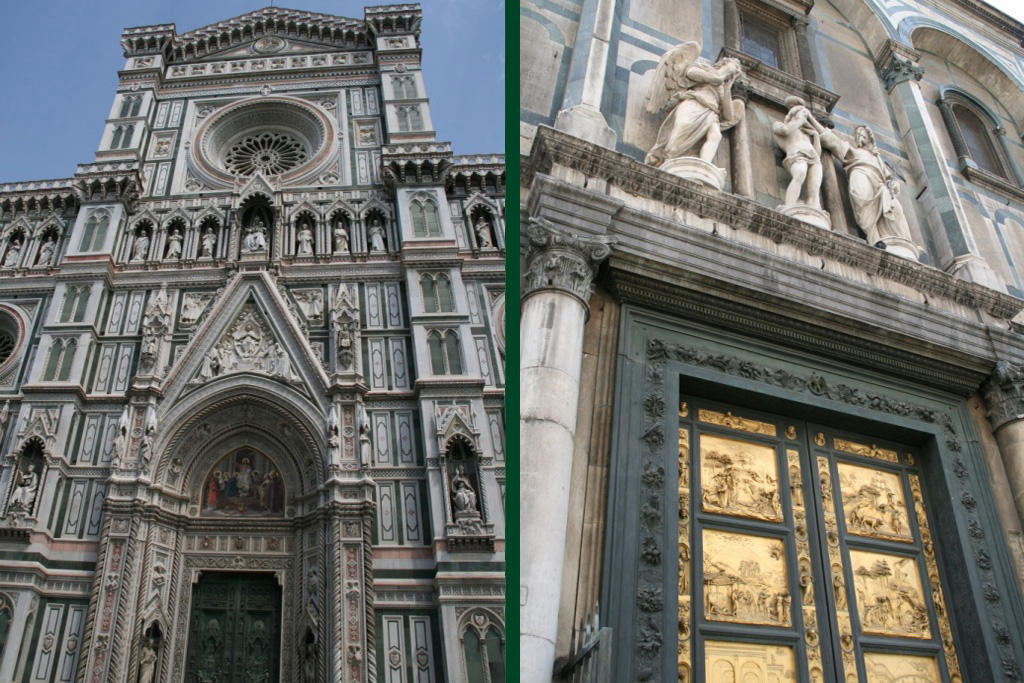 One of the panels from the east doors, depicting scenes from the bible, were designed by Ghibert and described by Michelangelo as the Gates of Paradise. The panels have long been replaced by replicas, the originals are now on display at the Museo dell Opera del Duomo.