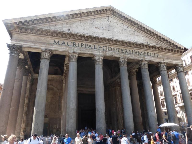 "The Roman Pantheon is the most preserved and influential building of ancient Rome. It is a Roman temple dedicated to all the gods of pagan Rome. As the brick stamps on the side of the building reveal it was built and dedicated between A.D 118 and 125. Each of the 16 granite Corinthian columns at the entrance weighs 60 tons; they were quarried in Egypt, and transported, via the Nile and the Tiber over 500km to Rome to support the portico - quite some feat in ancient times."