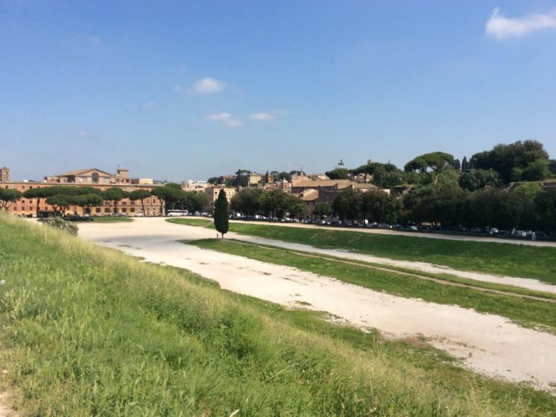 "This is what is left of Circus Maximus showing the track on either side that chariots, amongst other things, raced around.The last race in the Circus Maximus was held in 549 AD, almost a 1000 years after the first races. The origins of the Circus Maximus go back to the sixth century BC when Tarquinius Priscus (fifth king of Rome) created a track between the Palatine and Aventine hills.