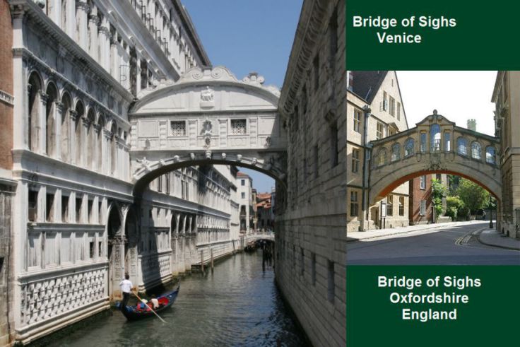 Incidentally, it's probably not common knowledge that there is a Bridge of Sighs in Oxforshire; it's correct name is Hertford Bridge and is a skyway joining two parts of Hertford College over New College Lane in Oxford.